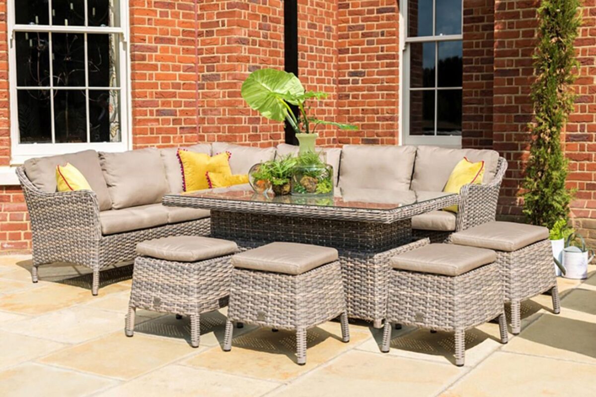 For all those wonderful times, the 4 Season Outdoor Canterbury Corner Dining Set is the choice for you. Includes Corner Sofa with a 125cm Adjustable Table (High or Low), 2 Footstools.