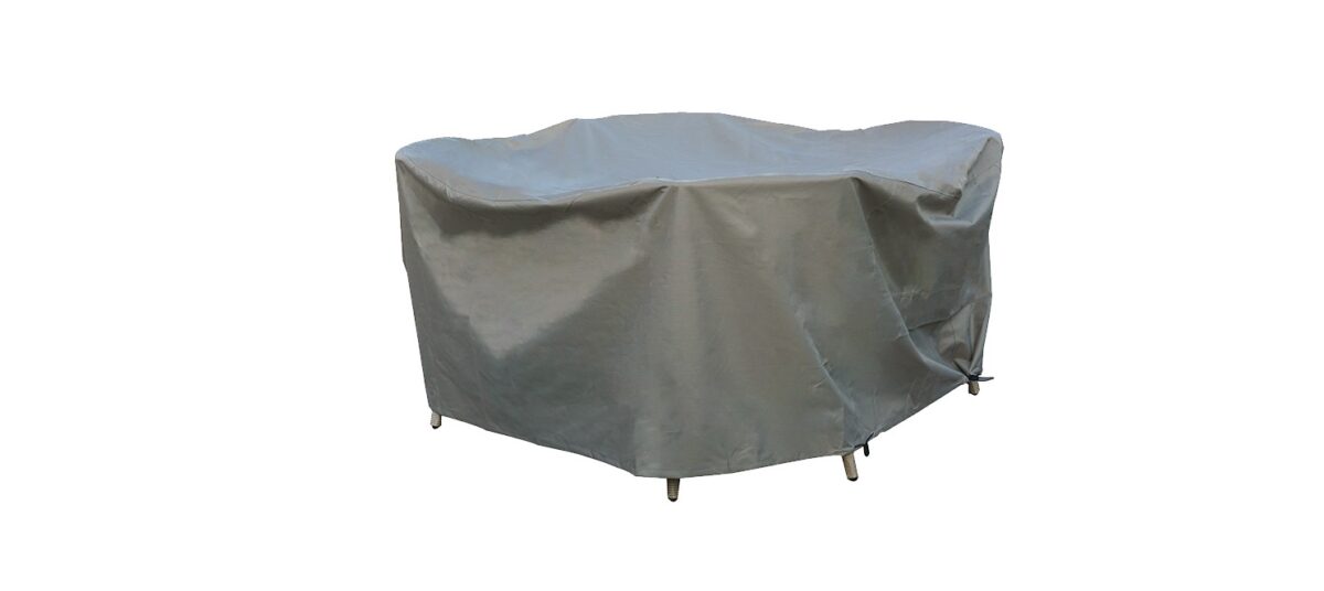 Protect your furniture set from the elements with this new-style furniture cover. Made from a water-repellent, tear-resistant fabric, the cover fits over the entire set and is easy to fit and secure with a drawstring cord lock.