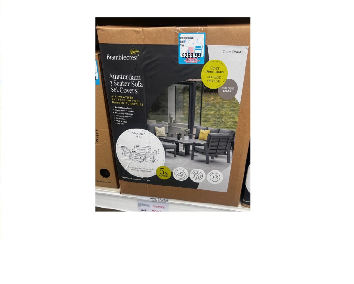 Set contains covers for Sofa, x 2 Chairs, Table and Bench