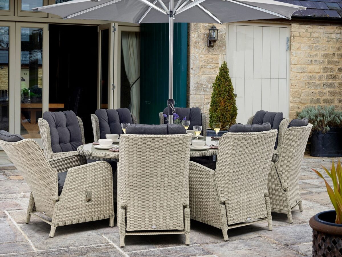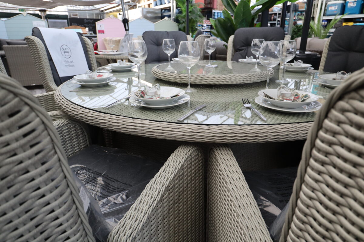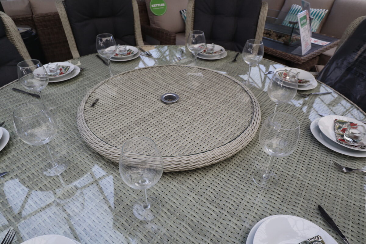 Bramblecrest Chedworth 8-Seat Round Dining Set – Dove Grey adds a touch of sophistication to your supper parties.