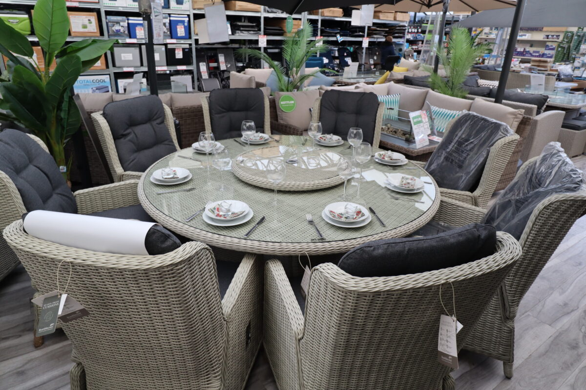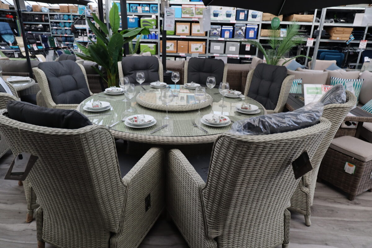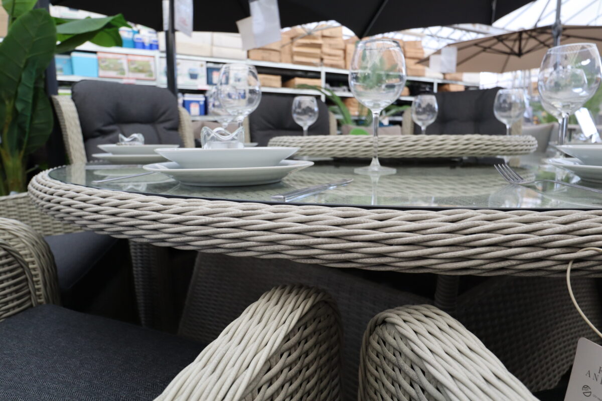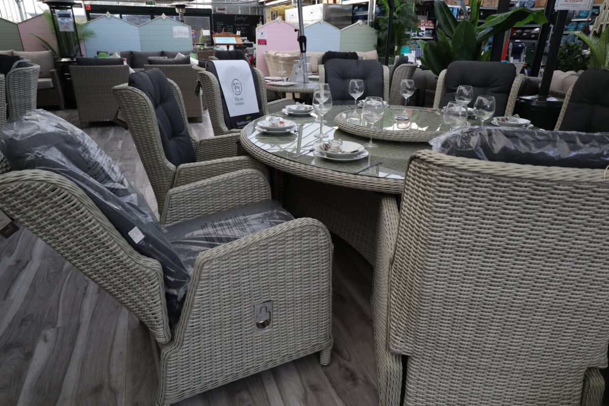 Bramblecrest Chedworth 8-Seat Round Dining Set – Dove Grey adds a touch of sophistication to your supper parties.