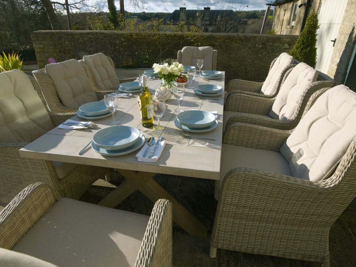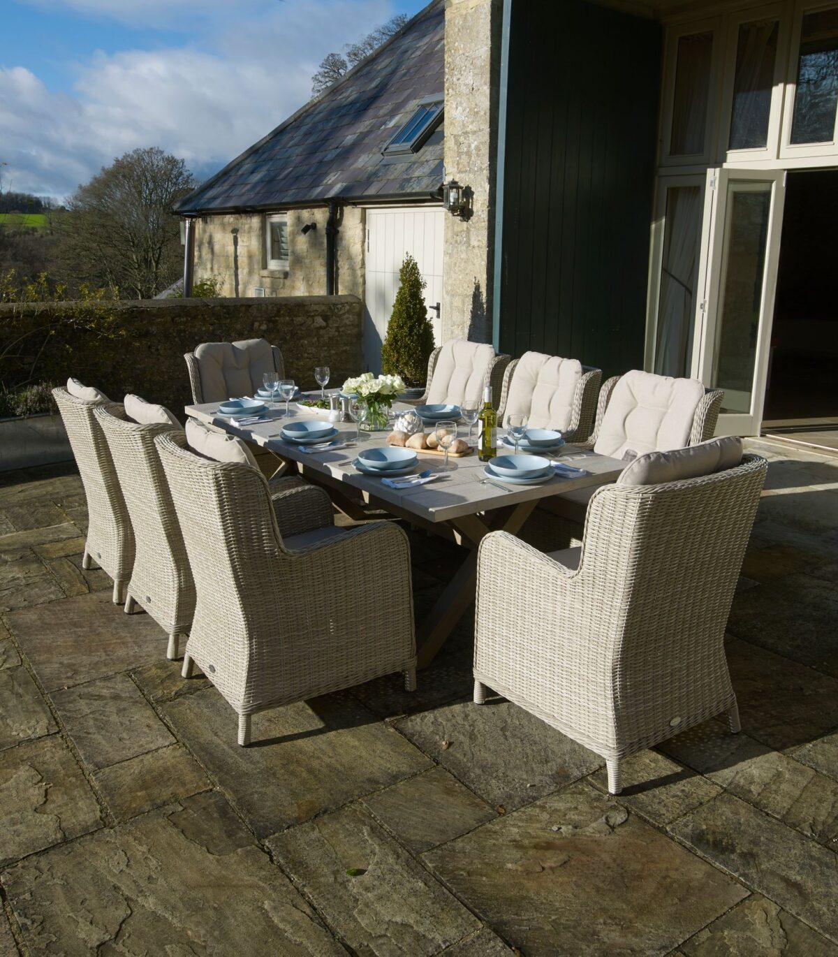 Bramblecrest Chedworth Rectangular Ceramic Table & 8 Chairs – Sandstone