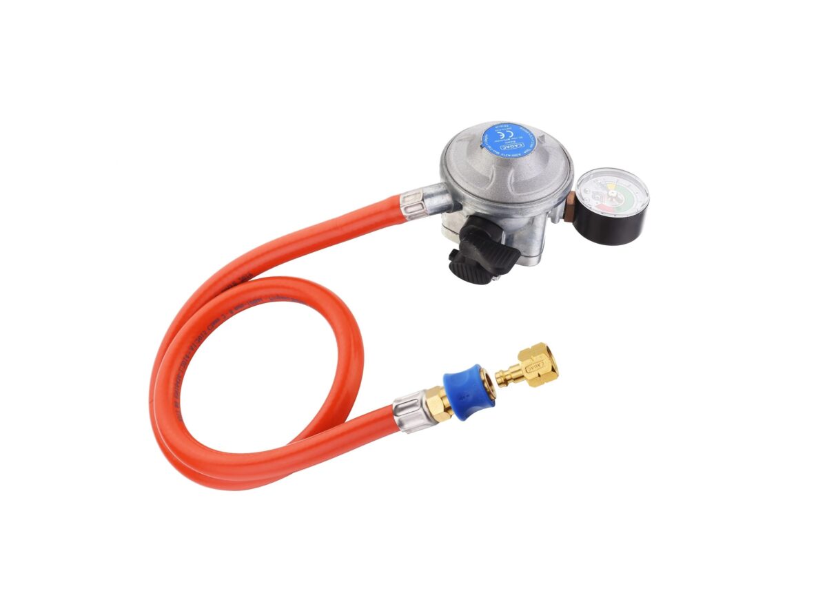 Suitable for Calor 7/12/15kg and Flogas 7/13kg refillable gas cylinders. Inlet size 21mm. With overflow level indicator to allow visual gas level monitoring and convenient leak testing. To maximise safety all Cadac cylinder regulators are now factory fitted with a crimped 85cm hose and QR fittings. The added safety feature EFV (Excess Flow Valve) comes as standard. EFV is an automatic hose safety feature that automatically cuts off 90% of gas flow if the hose is compromised. The QR fitting acts to stop gas flow if the joint is disconnected from the BBQ and the regulator has a convenient and safe snap-on attachment mechanism.