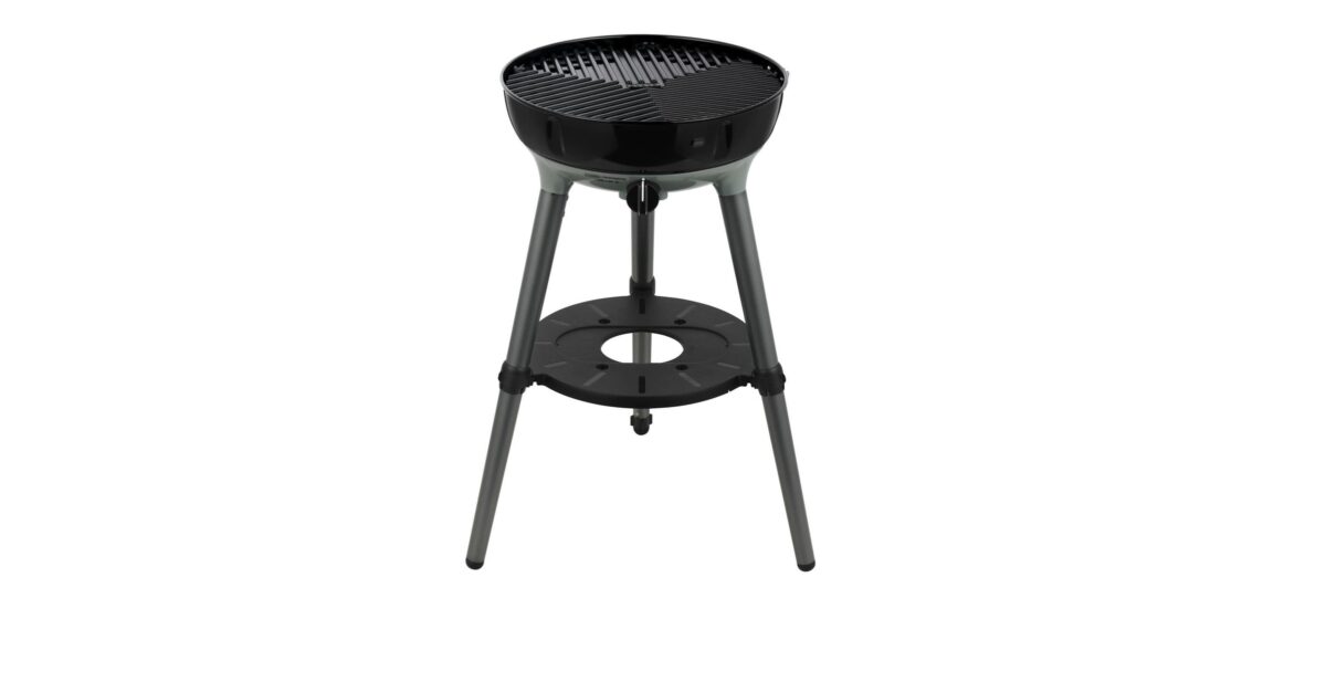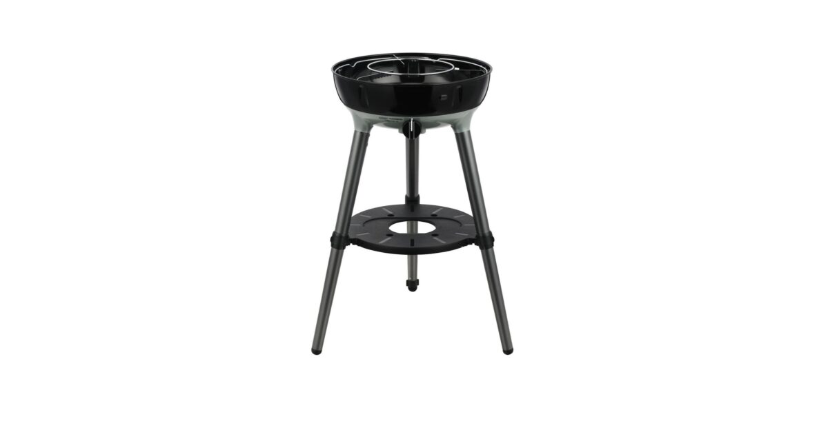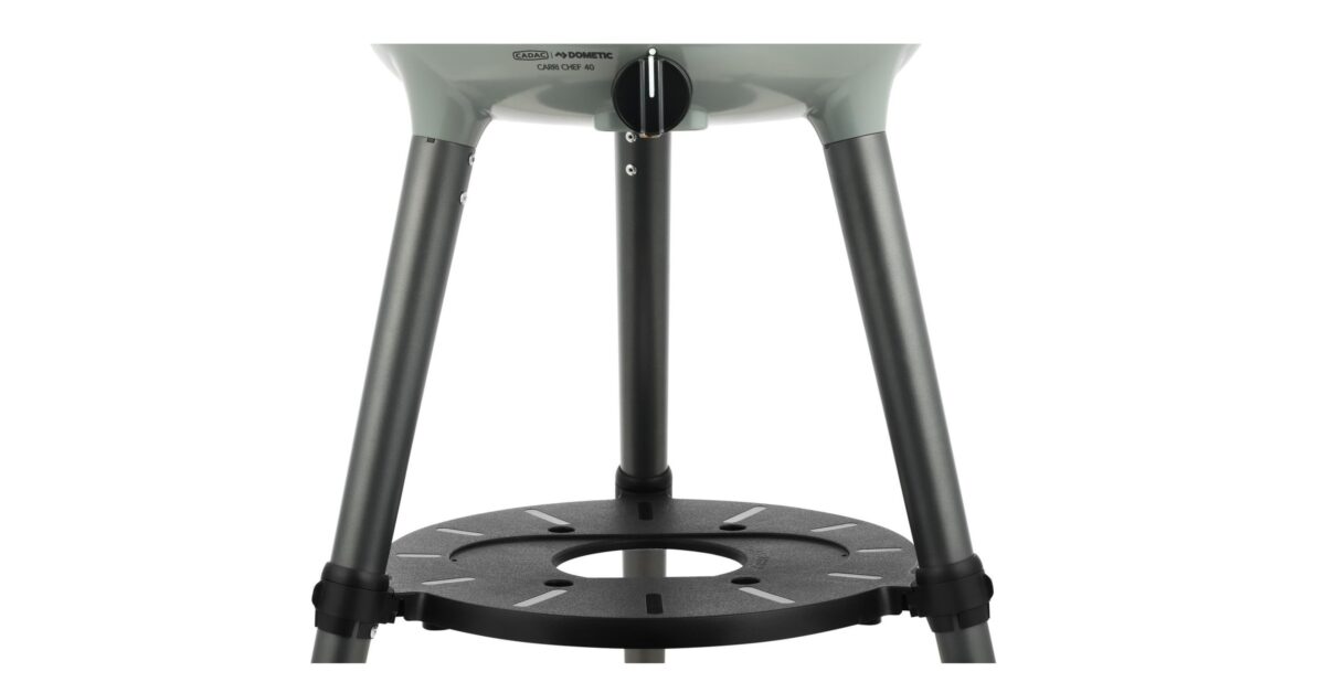 The dome lid, with stay-cool handle and thermometer, hooks onto the side of the BBQ to act as a windshield, and the utility shelf provides safe seating of the Cadac Power Pak gas supply.