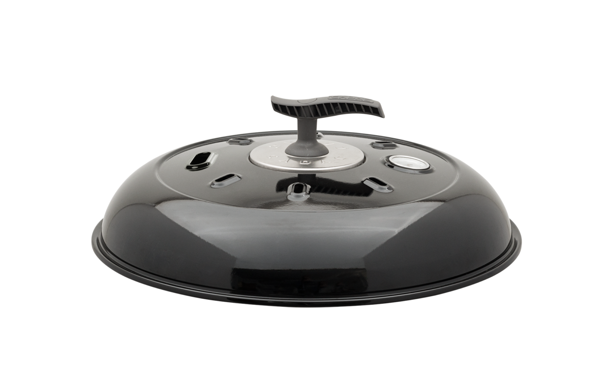 An enamelled dome lid to fit the Carri Chef 2 range of gas BBQs. It acts as a windshield by hooking on to the side of the BBQ and is fitted with a thermometer and a convenient stay-cool handle at the top of the dome. Size: 47cm