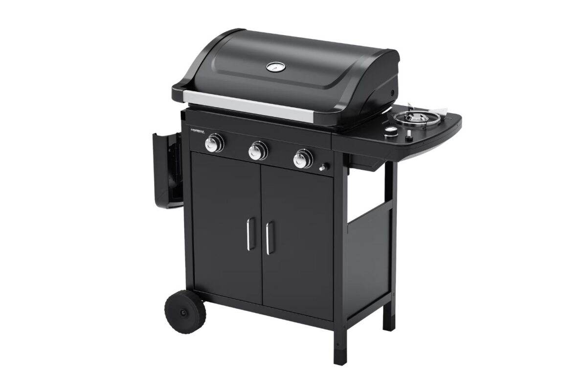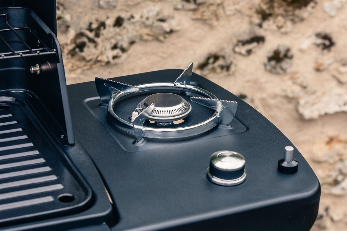 - Integrated side burner for preparing vegetables or sauces while grilling