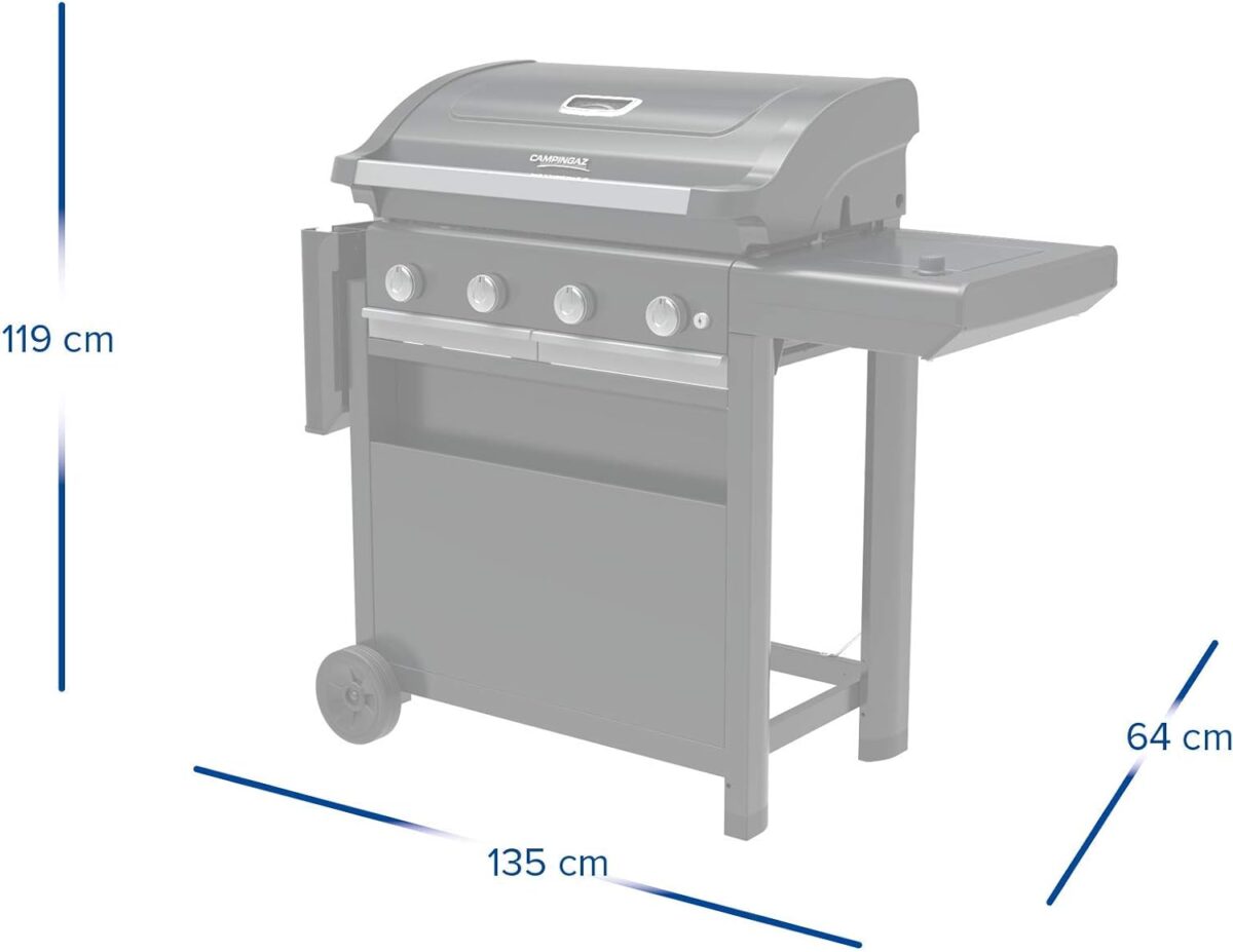 Cook up a feast for family and friends with the 4 Series Premium S gas barbecue. Featuring 4 efficient and high-performance stainless steel burners with our efficient Blue Flame Power System that ensures significantly less flare ups by design and keeps your food nice and juicy. Together with a large, enamelled cooking surface this barbecue is perfect for preparing a wide range of al fresco meals. The powerful side burner can be used to prepare accompaniments to the grilled food, cooking up a full feast with ease. The Campingaz® Culinary Modular System provides keen grillers with even greater cooking versatility. Cleaning is quick and hassle-free thanks to the Campingaz InstaClean® Aqua System. Electric ignition offers convenient lighting with batteries are included. Improved storage solution with Campingaz Push2Fold folding side table. Integrated utensil hooks for easy access and convenient storage of grilling accessories. 5 year warranty on the Campingaz® Blue Flame Power System and cooking surfaces.