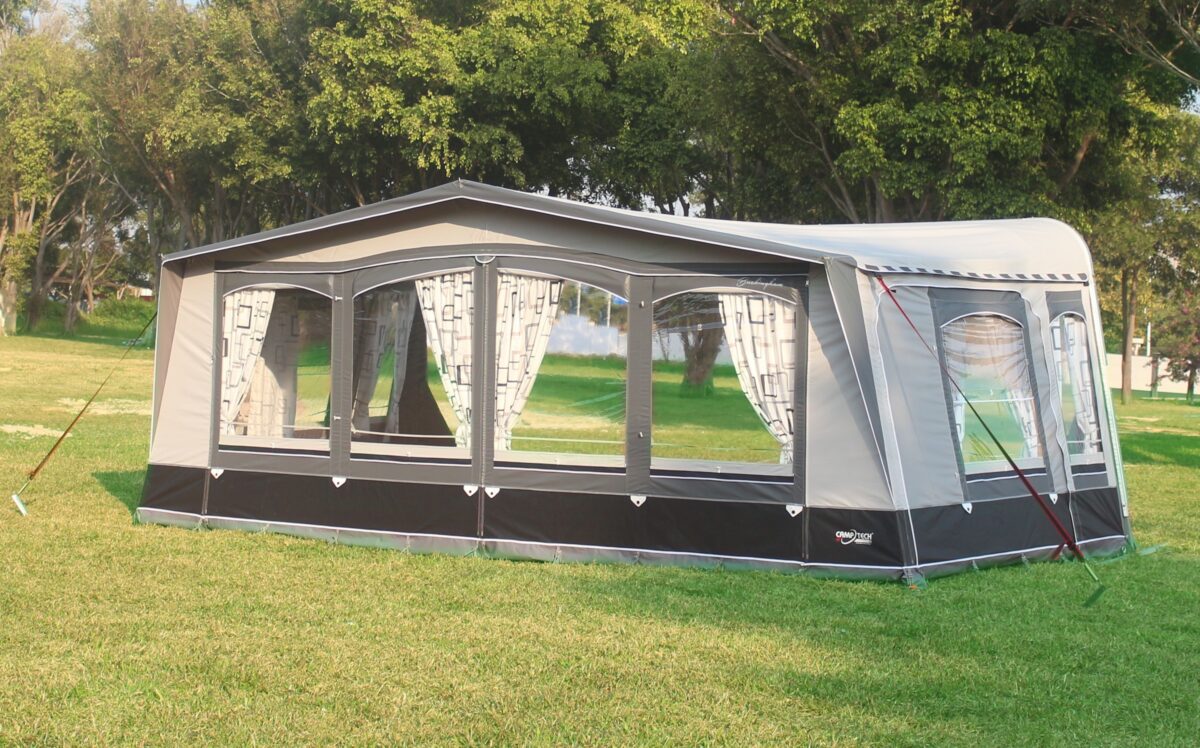 The Buckingham is Camptech’s flagship all-season awning, made from high-quality SR21 Climatech seasonal material, with panoramic windows and generous 3-metre depth which gives the awning a spacious feel and maximum living area.