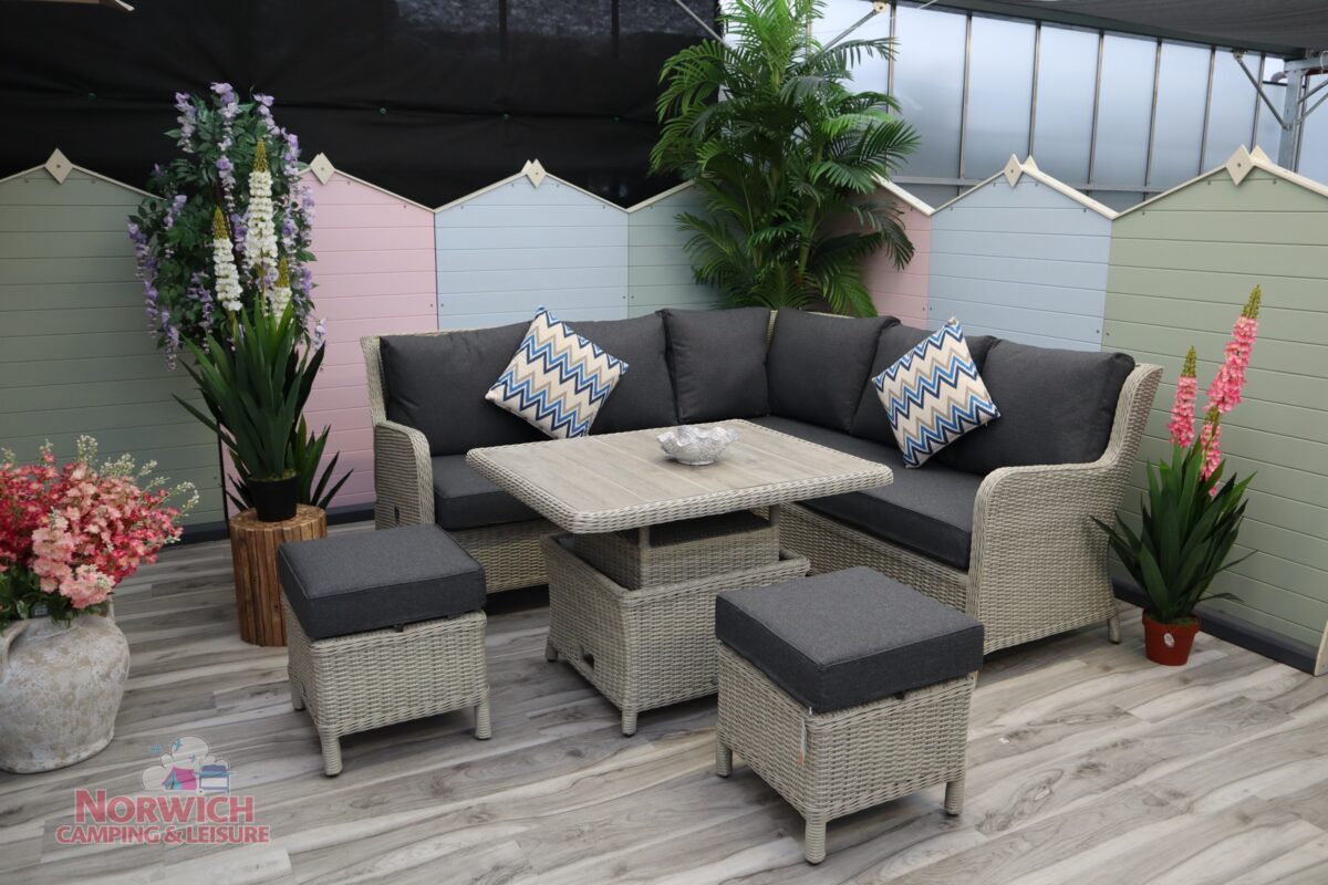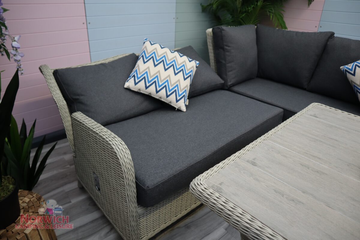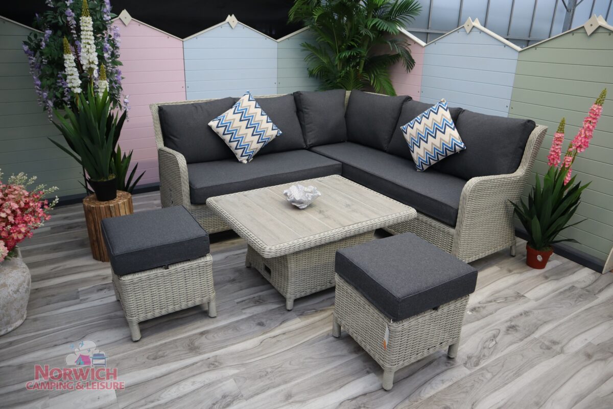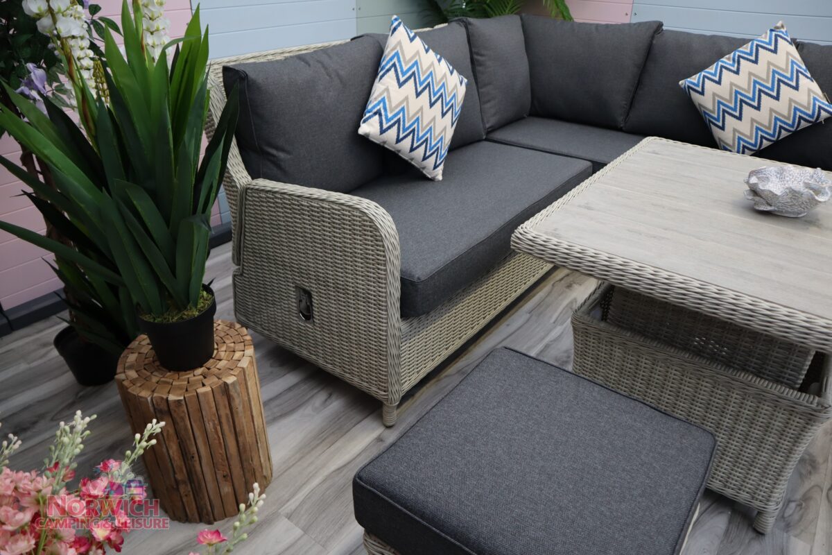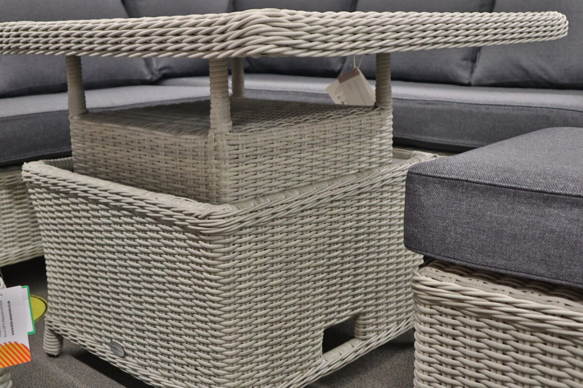 Bramblecrest Chedworth Mini High/Low Corner Set – Dove Grey is a pleasing blend of traditional rattan design with added detail, offering exceptional style and elegance.