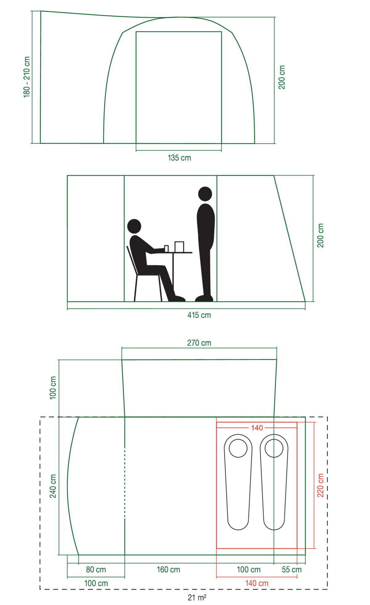 The JourneyMaster Pro L offers comfortable living and sleeping areas for 2 people with increased dimensions over the M model. The tunnel construction with colour-coded fibreglass poles is easy to pitch. The multiple windows ensure a bright living area. Suitable for rail heights 180-210cm.