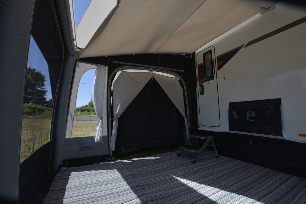 Integral Inflatable canopy – built-on canopy over the front doors with mesh on the apex for ventilation