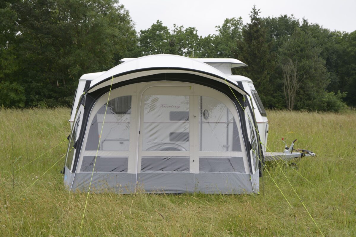 The rear of the awning has an extra inflatable tube which raises the centre height making it a full height awning with plenty of head room and a light air feel, the pop has plenty of windows for great views and allowing light in the awning. the pop also has closable mesh panels to provide ventilation when needed.
