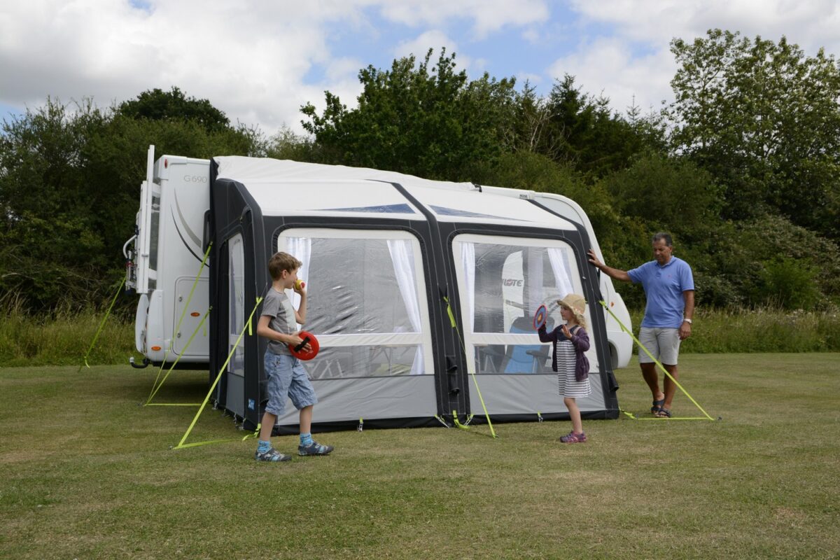 Once set up, the awning provides plenty of space for furniture and other equipment. It can be fitted with Kampa Dometic’s full range of Rally optional equipment to tailor it to your needs. These options include sleeping/storage annexes, extra mesh panels, LED lighting, breathable carpets and even a conservatory.
