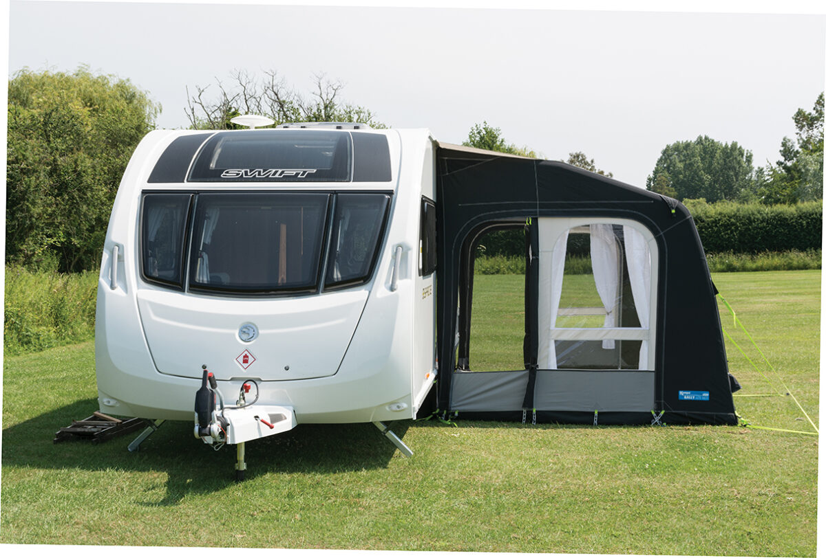 The Rally Air Pro is quite the best-selling inflatable awning in the world. This updated series 5 version brings even more features and makes sure that the Rally Air Pro remains market-leading. This is a full-function awning: Interchangeable zip-out side panels allow the fitting of annexe or conservatory and the reversal of side doors – from the back of the awning, to the front. For 2019 Kampa Dometic completely redesigned the Rally Air to include the Dual Pitch roof system and a large mesh window panel in the right-hand side panel. All the Rally Air Pro’s can now be fitted with optional front mesh panels, giving loads of ventilation whilst keeping the bugs out. The Rally Air Pro models are ready to accept the Limpet System – an ingenious method of attaching the side walls to the caravan.