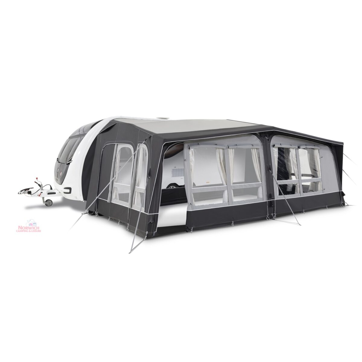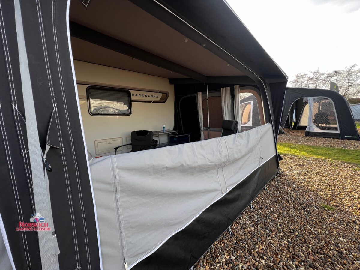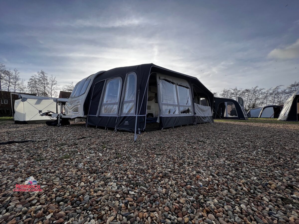 - Full inflatable awning – Full caravan coverage doubles the usable space of your pitch