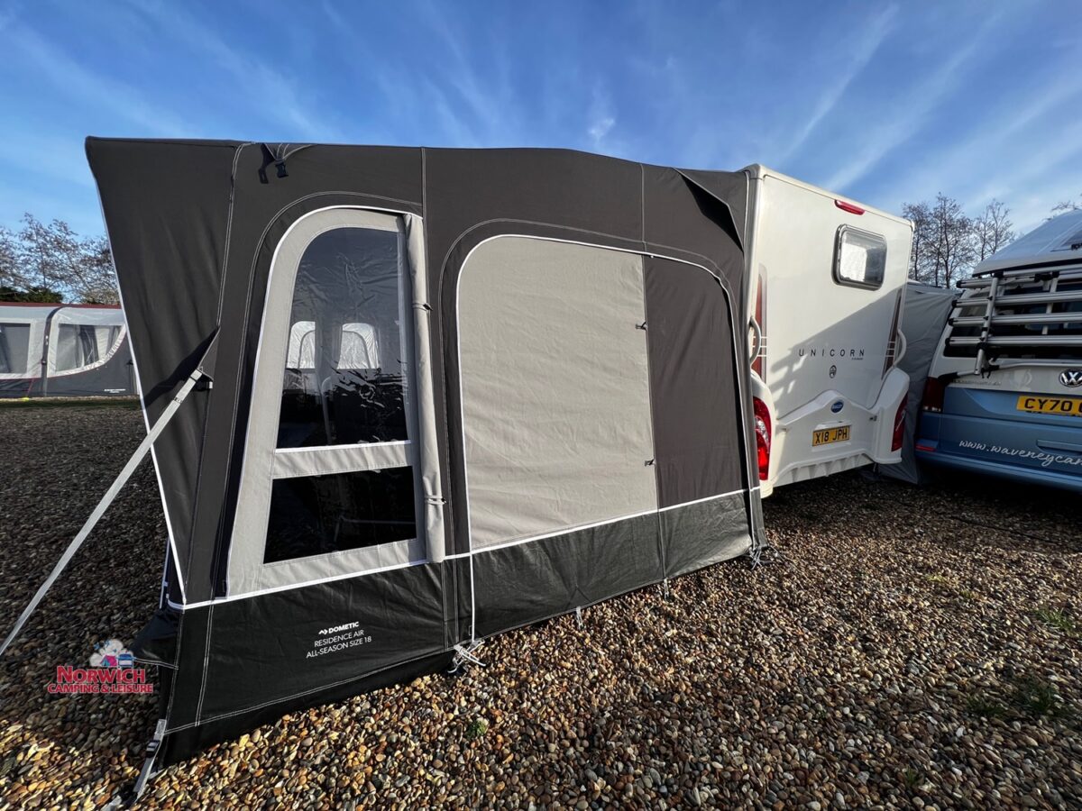 Available in A measurement sizes 13 to 18, the Dometic Residence awning boasts an integrated inflatable canopy, zipped external window blinds and removable front and side panels. Built to last, the breathable, polycotton material construction makes this awning extremely resistant to inclement weather – great for long site stays at any time of year.