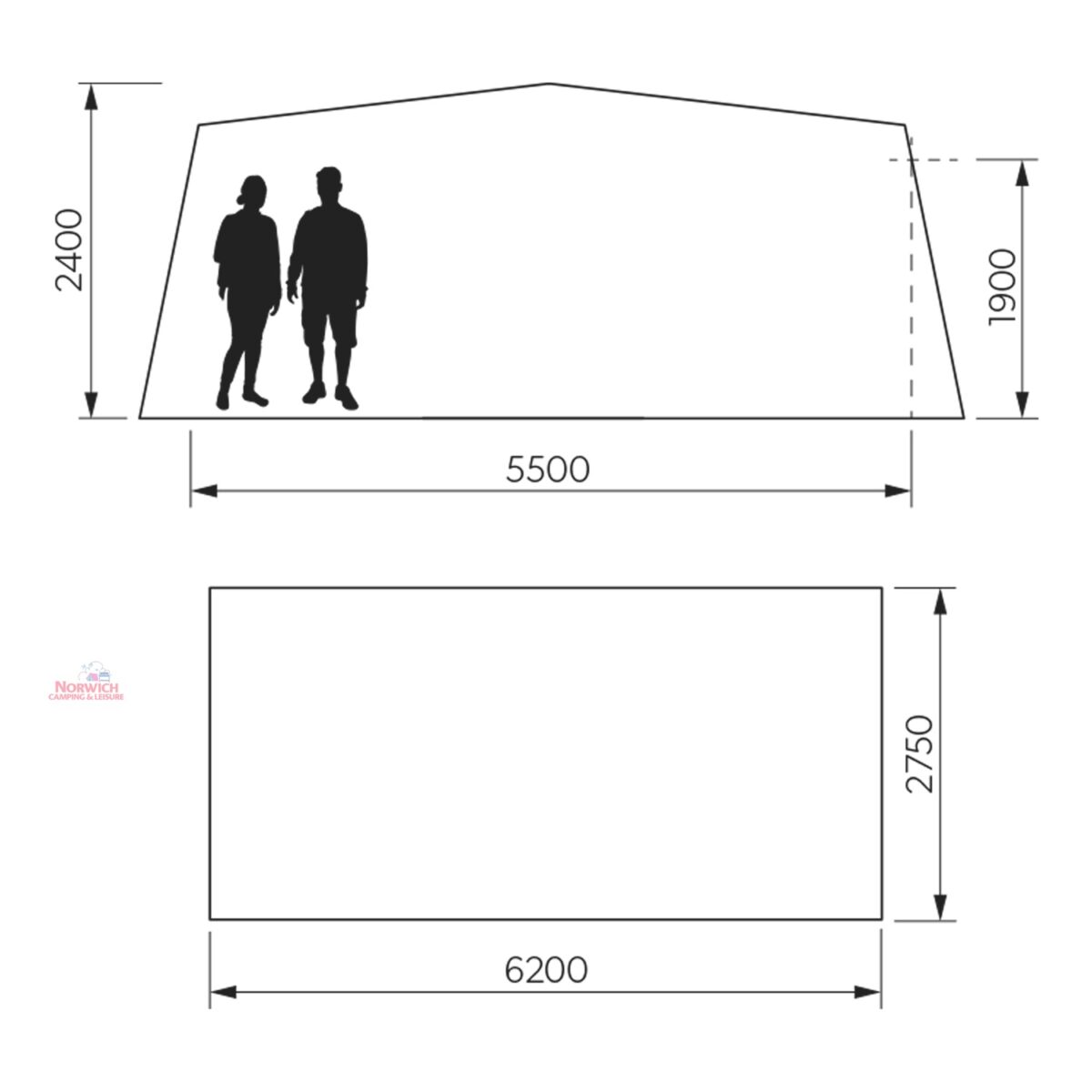 - Full inflatable awning – Full caravan coverage doubles the usable space of your pitch
