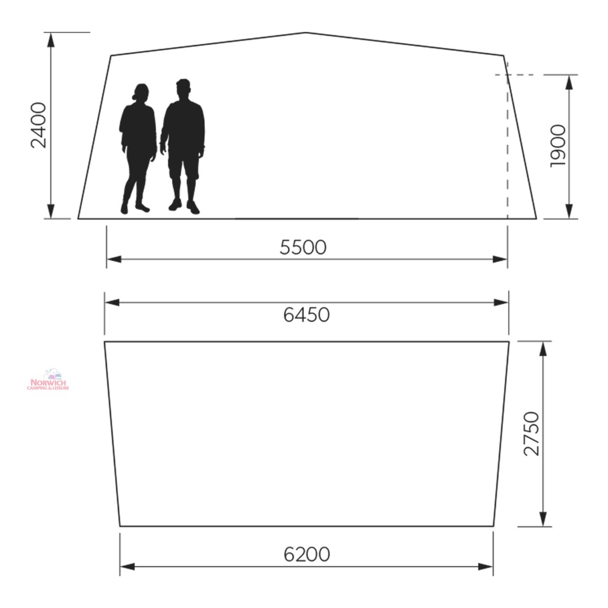 - Full inflatable awning – Full caravan coverage doubles the usable space of your pitch