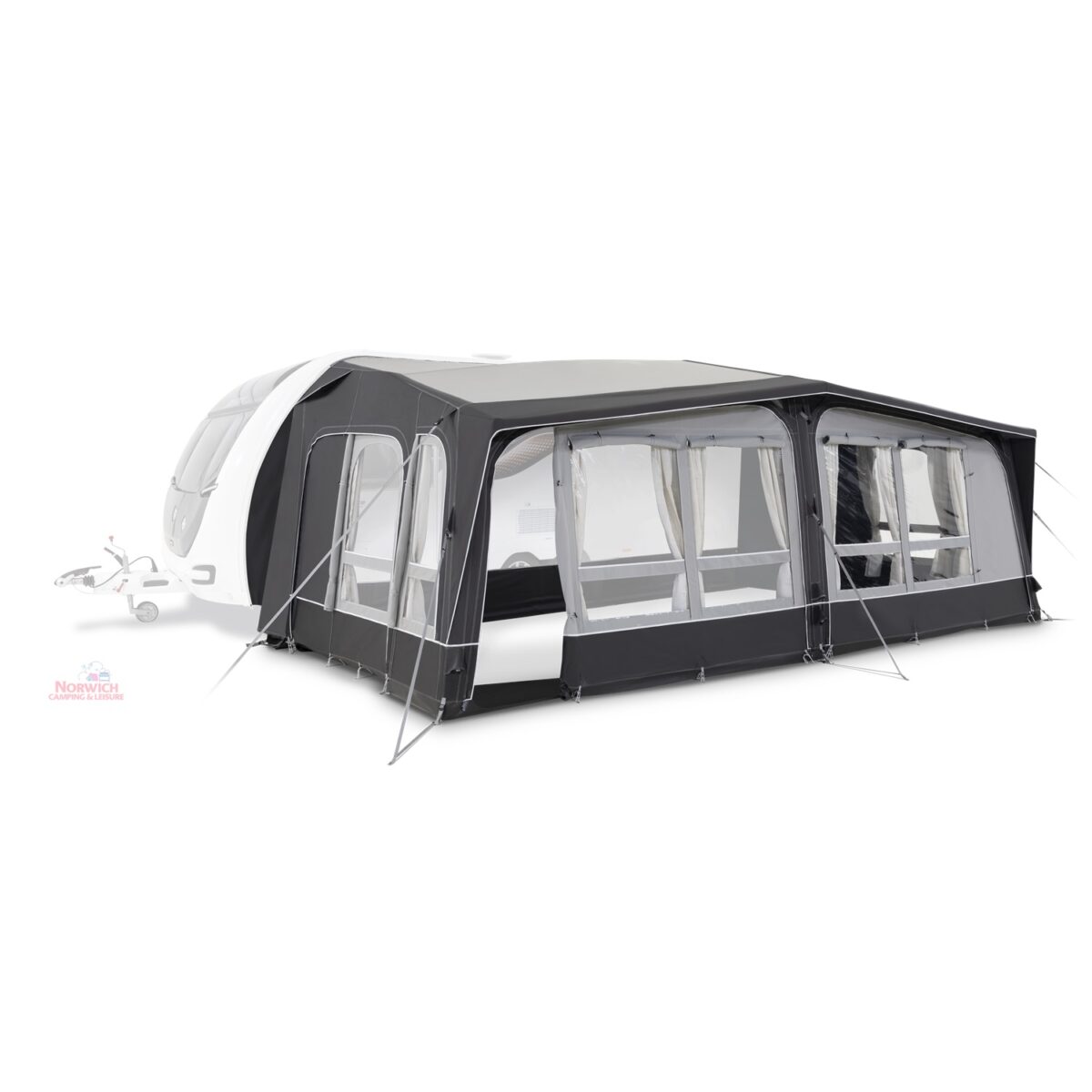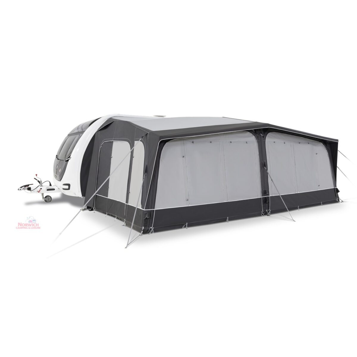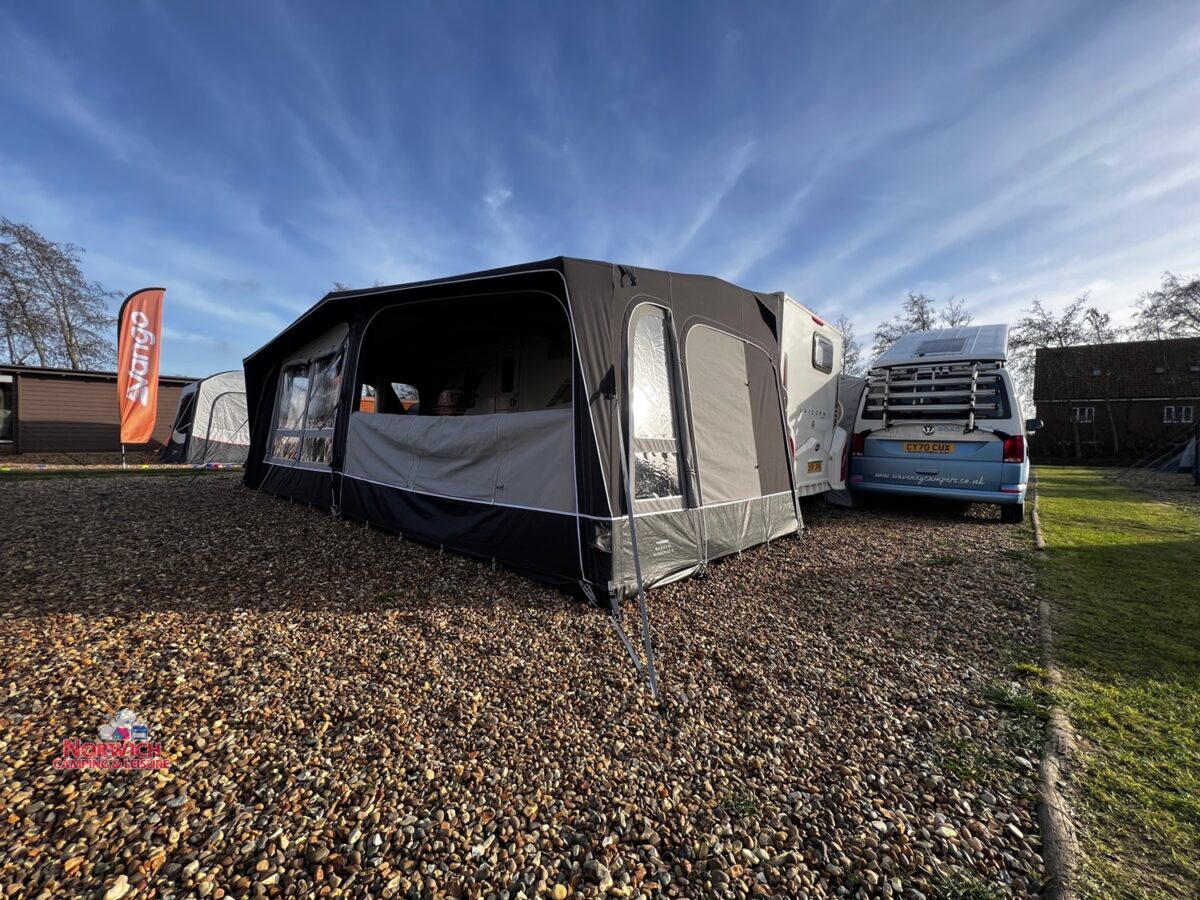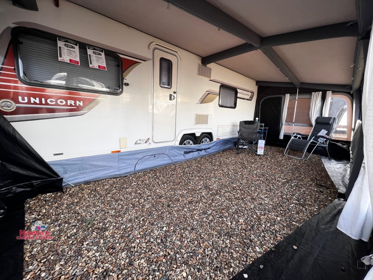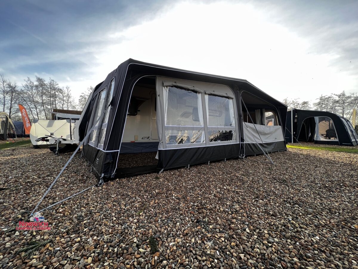 - Full inflatable awning – Full caravan coverage doubles the usable space of your pitch