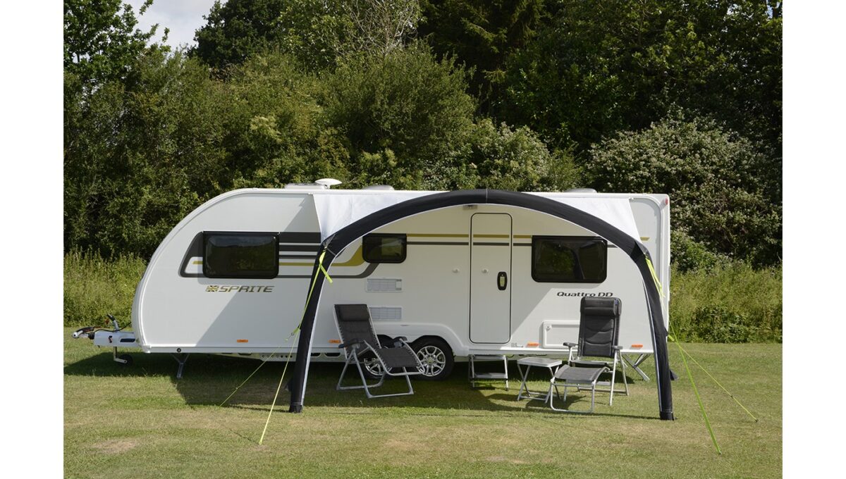 Sunshades are notorious for catching the wind and, in the worst case scenario metal frames can damage the caravan. There’s no such problems with the Kampa Sunshine, the soft poles inflate in seconds and will never damage the caravan. After the quick set up the sunshade gives a generous sheltered area in which to relax.