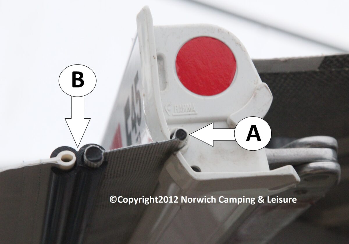 – Step 1. Simply slide the narrow section (4mm) of twin piping into the Fiamma/Omnistor channel (see picture, part ‘A’).