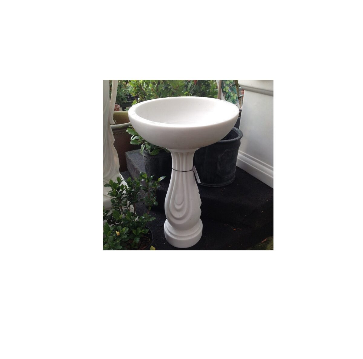 This beautiful bird bath is constructed in resin and crushed marble and hand finish to a very high quality. It would fit in a sleek contemporary or more traditional classic garden setting, creating a wonderful focal point. Each bath is slightly different due to it’s hand finish.