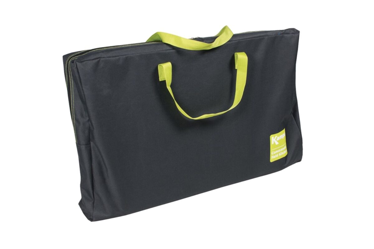 A camping kitchen from Kampa – it is easy to set up with extra worktop space for food preparation.  Underneath there is a zipped larder on one side, whilst on the other, you have a shelf for pots and pans, etc.  Useful additions such as mesh bin/basket on the side make this kitchen a good choice for family camping.