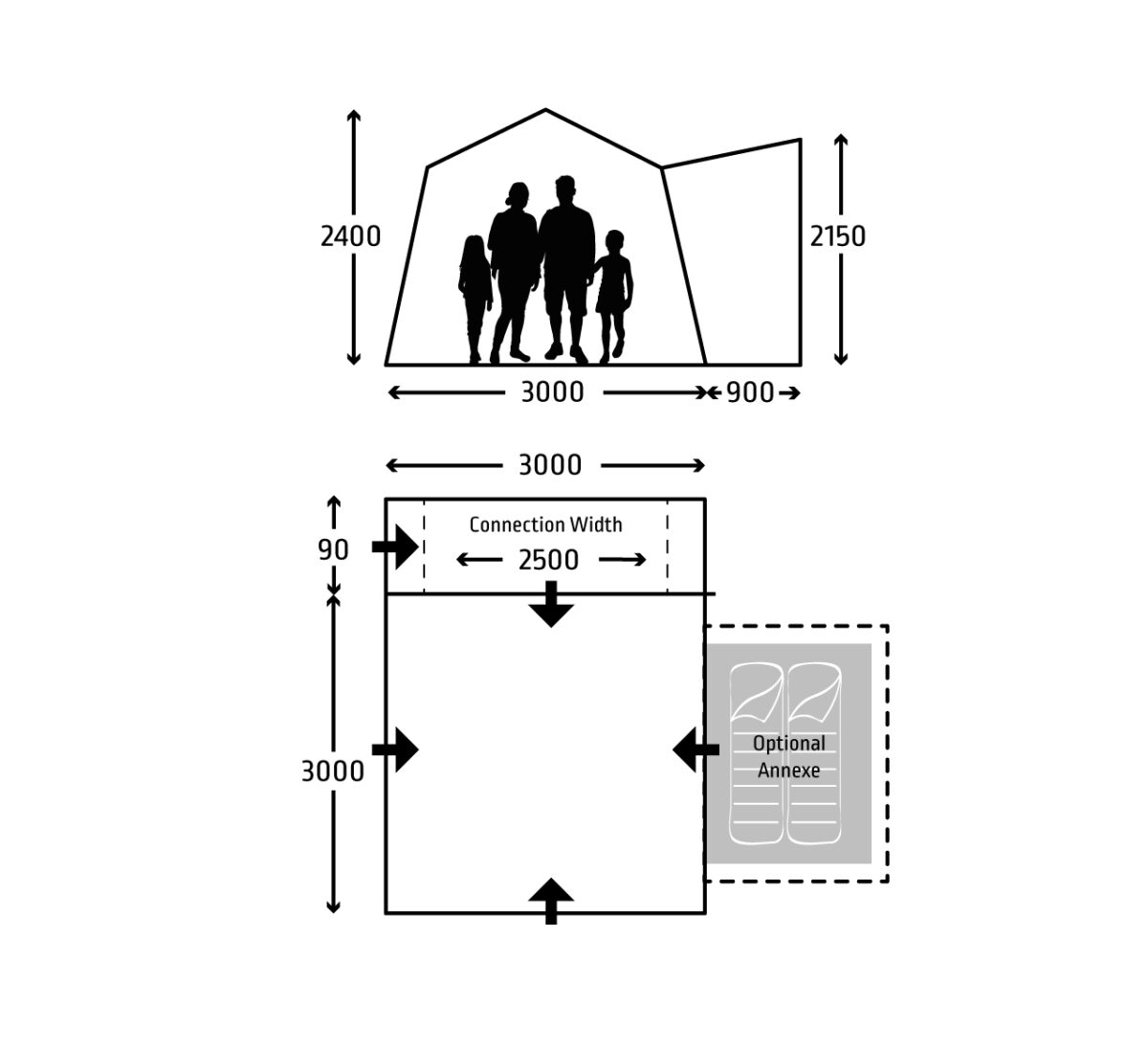 The optional zip-in annex comes with a double bedroom compartment allowing the awning to sleep up to 4 people with two annexes fitted without compromising on living space. The bedroom compartment can also be unclipped to use the annex as a storage area.