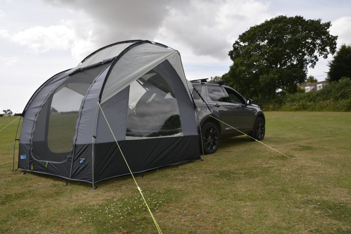 The Tailgater works with vehicles with a rear tailgate. Available in two versions, with fibreglass poles or with the main poles inflatable for an even quicker set-up. Both versions share the same features and footprint, and are easily attached and disconnected from the vehicle. The awning can be closed up while you go out and explore the area.