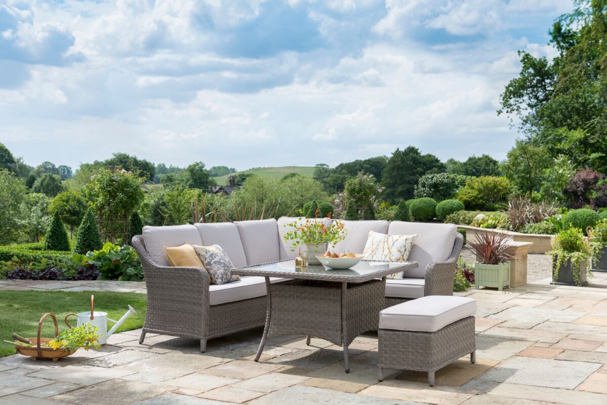 Made from hand woven weatherproof wicker, the outdoor corner seating comprises one large corner sofa and one bench which fits neatly under the table. For a comfortable mix while dining and lounging, the set also includes the Charlbury Casual Dining Table. This perfect addition to the set creates the perfect area for entertaining guests.
