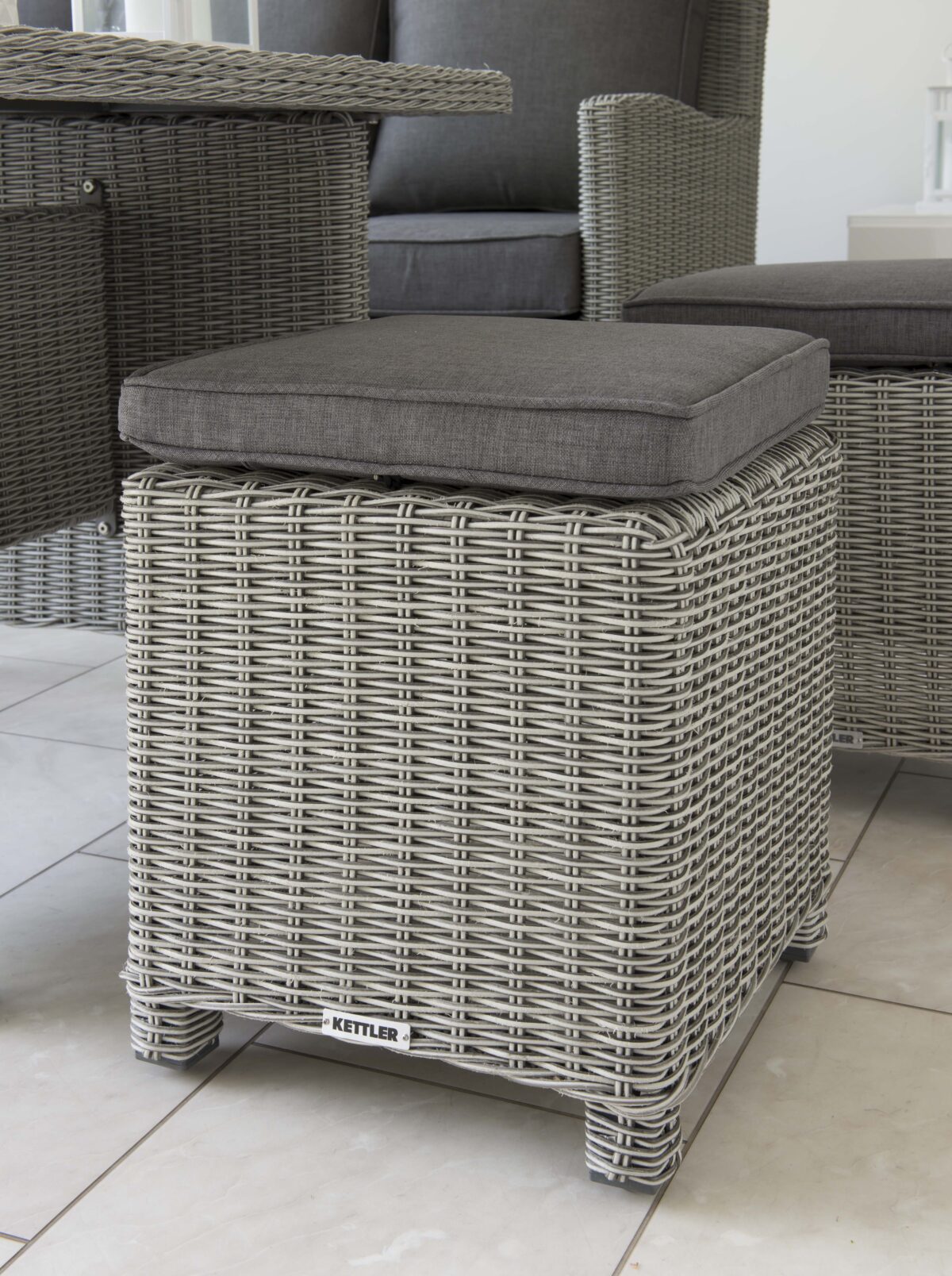 An ideal choice when looking for compact corner seating for modestly-sized gardens, the Kettler Palma Mini Corner Dining Set is stylish, comfortable and can seat up to 7 people. It consists of a corner seating unit, two stools and a glass-topped dining table.