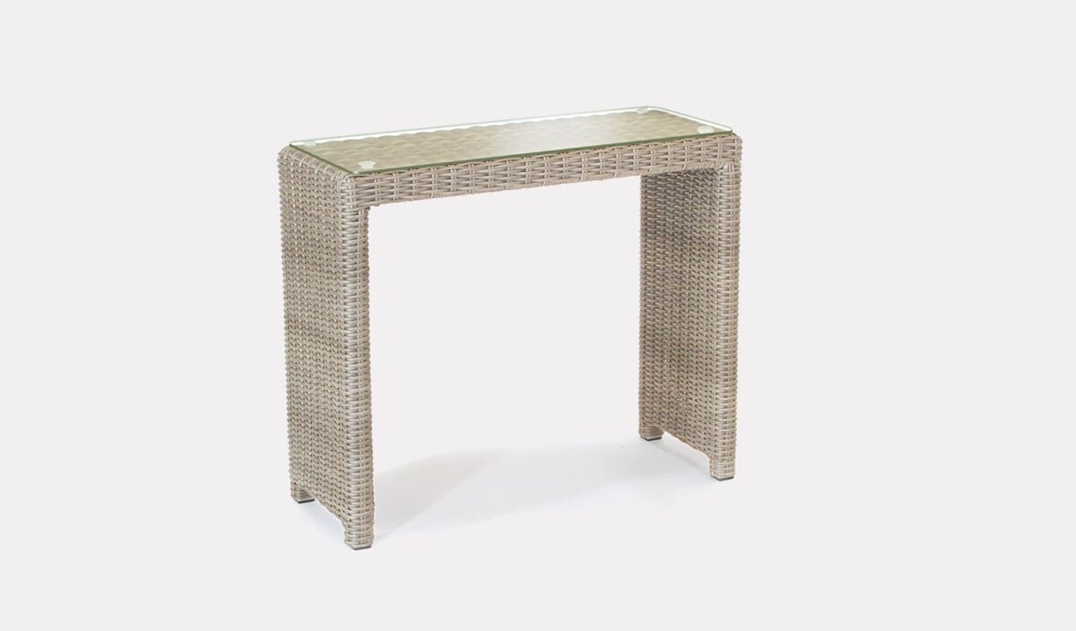 The Oyster-coloured wicker is handwoven over an aluminium frame and matches Kettler’s other Oyster-coloured garden furniture. Adjustable feet keep the table steady on uneven ground.