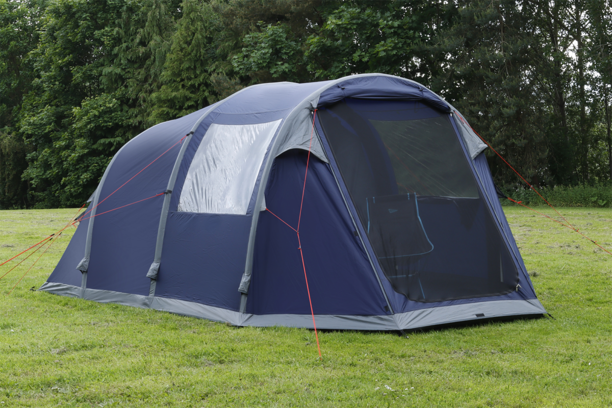 This air tent features inflatable air beams which act as the main supporting structure of the tent, large windows fitted with curtains to let in plenty of light during the day & privacy at night and a sewn-in groundsheet to keep draught and insects at bay.