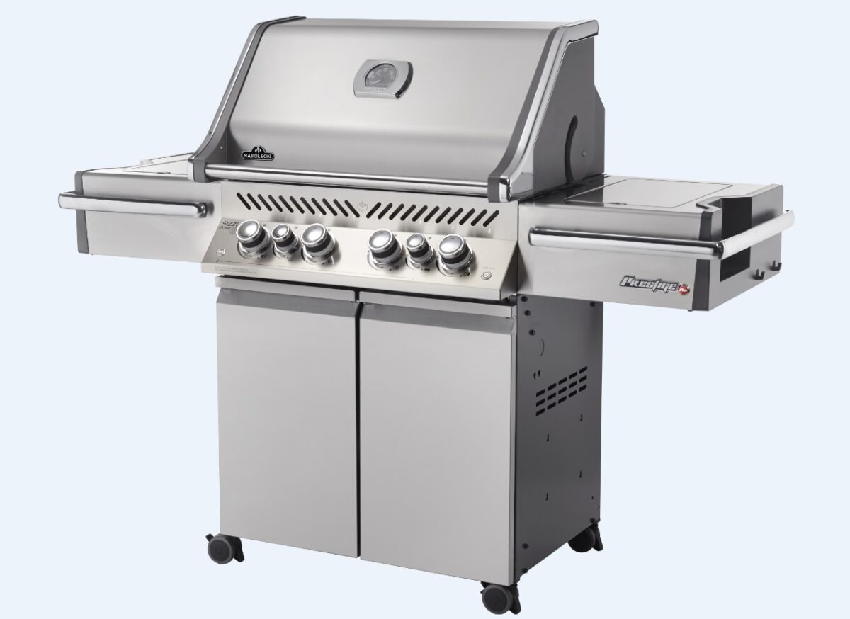 The Prestige PRO 500 gives you a total of six burners – four bottom tube burners made with 304 stainless-steel give you the durability and heat control that Napoleon® is known for. The infrared SIZZLE ZONE™ side burner heats to 1000°C in seconds. That means you’re able to sear the perfect steakhouse-style meal in minutes. The SIZZLE ZONE™ is a piece of ceramic that has many little holes through which gas flows and is lit. The ceramic glows red hot in seconds, producing infrared heat. Easily lock in the juices and self-baste your meals with the rotisserie burner.