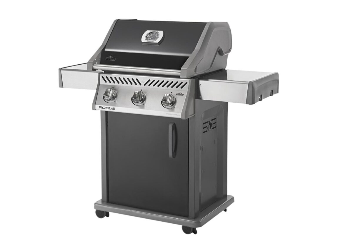 Cast-Iron WAVE cooking grids – if perfect sear marks are a badge of honour, the Napoleon Rogue 425 in black is the gas grill for you.