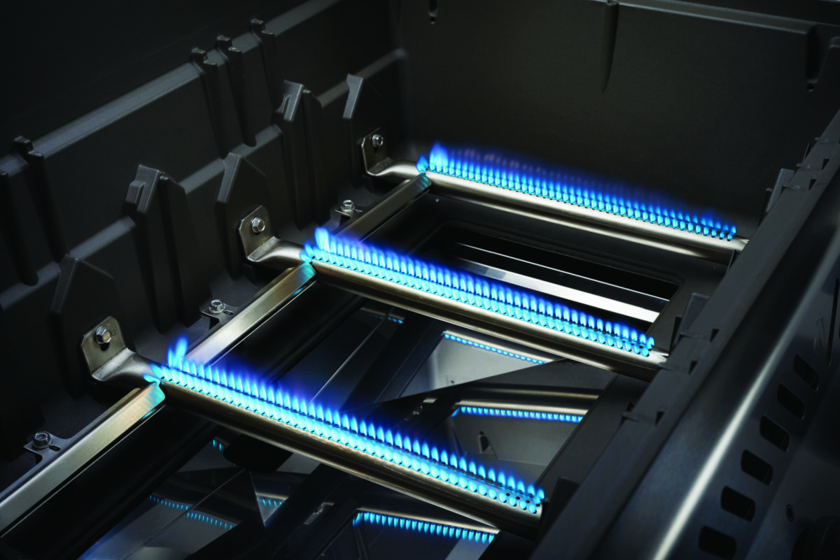Dual-level stainless steel heat distribution system.