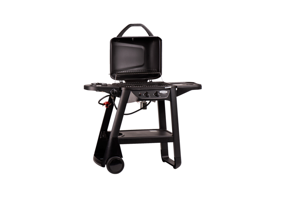 One of the two side tables includes a side burner the left of the main cookbox for the cooking of sauces and accompanying foods which are not suitable for cooking on the main cooking surface in the cookbox. The other side table is perfect for food preparation and has utensil hooks to keep necessary tools close at hand. Additional items can be stored underneath the barbecue on a shelf.