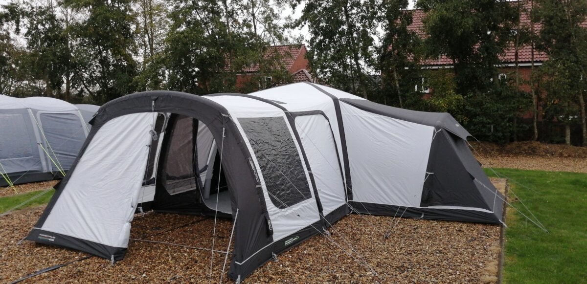The Airedale 12 features a 3m x 3m square Dura-Tech welded living area (with a Single Inflation-Point Tube). Off to the right-hand side you will find a four-berth bedroom, off to the left-hand side you will find another four-berth bedroom and, lastly, one more four-berth bedroom at the rear! The living space between the bedrooms can be used to socialise on those rainy days or to store your camping gear.