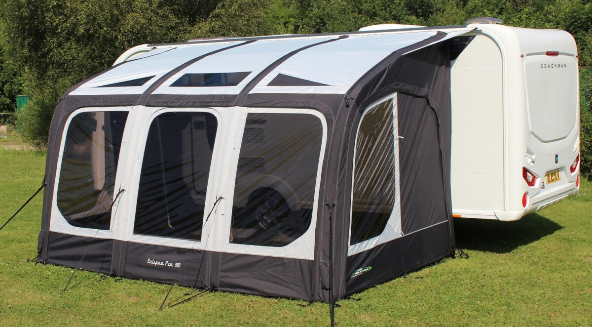 The Eclipse Pro 380 is set to become a firm favourite amongst tourers this season. Based on the popular width of 3.8m, the Eclipse Pro 380 boasts a myriad of features including famed dura-tech fully welded air frame with single point inflation for super-fast pitching.