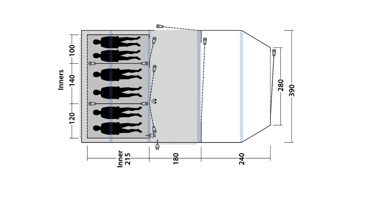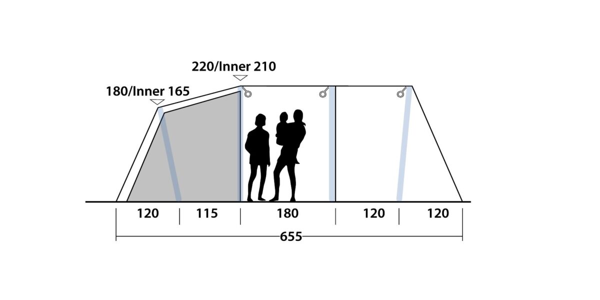 Rather than the industry standard of 60cm width per person for sleeping compartments, Outwell Sleep Comfort allows 70-80cm for more freedom & suggests the number of people that can settle down comfortable for a great nights sleep.