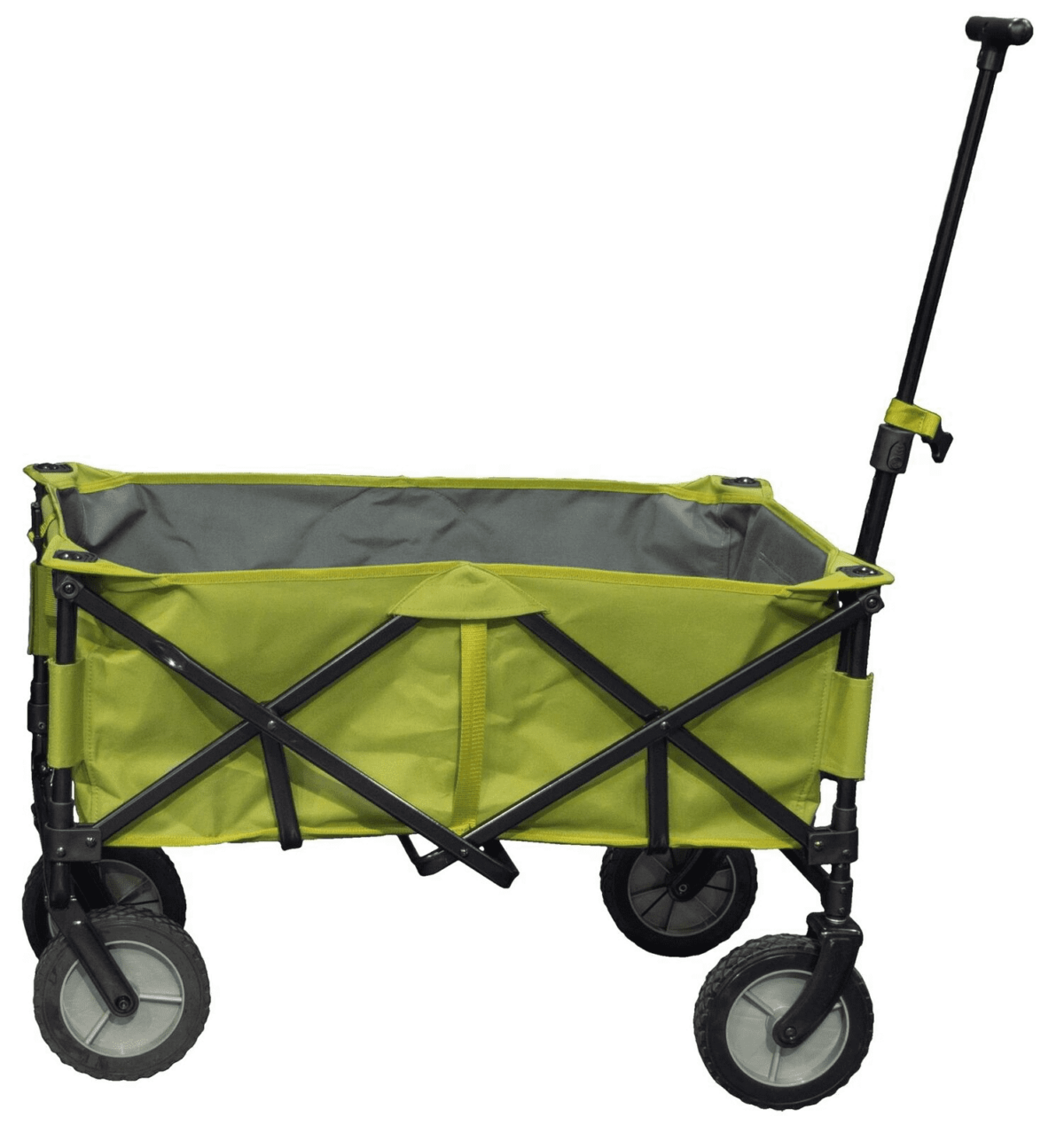 It has a strong powder-coated steel frame that is both strong and durable and, thanks to the powder coating, offers great weather resistance as well. The large rugged wheels make moving over rough ground easier and the solid tyres means no punctures – ever! The fabric is a high-quality 600D polyester, giving great durability and strength whilst helping to keep the weight down. The bottom of the cart features solid slats, making it stronger than the fabric-only versions and helps make the cart more stable when carrying heavier goods.