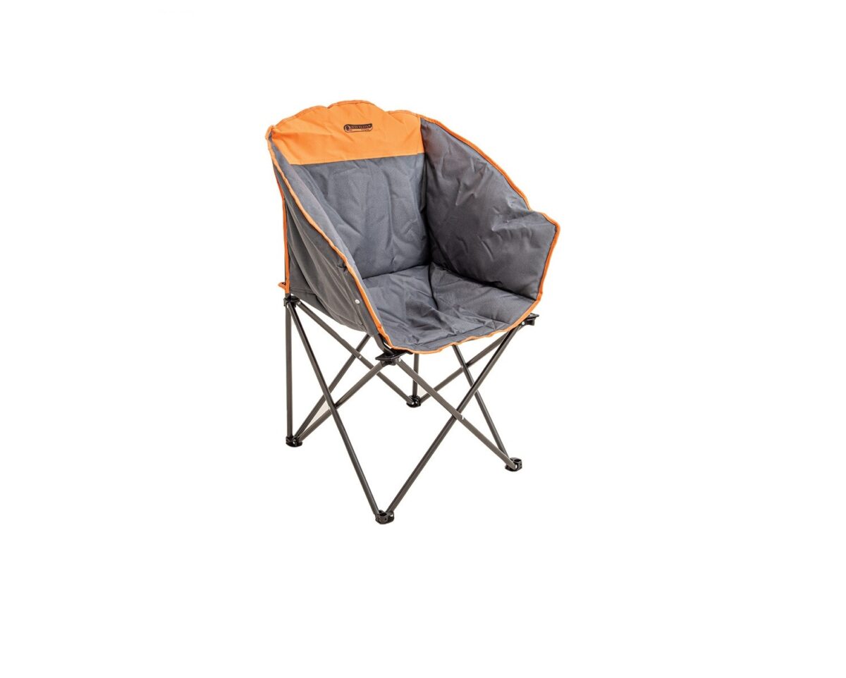 This is the premium Quest Autograph Kent Chair – Orange/Grey. This is a great, extremely comfortable wrap-around (or tub) chair. It features the maximum comfort of extremely padded Q-tex weave fabric and a premium electro-plated frame. The fabric on this chair has also been reinforced at the stress points which gives you better strength and durability. When you use the chair, the wrap-around nature gives you extra warmth at night as the sides wrap around you when you are seated. The covered and padded sides give you extra protection against the wind and weather adding to your comfort. It comes complete with a carry bag making it extremely easy to store away and carry when not in use.