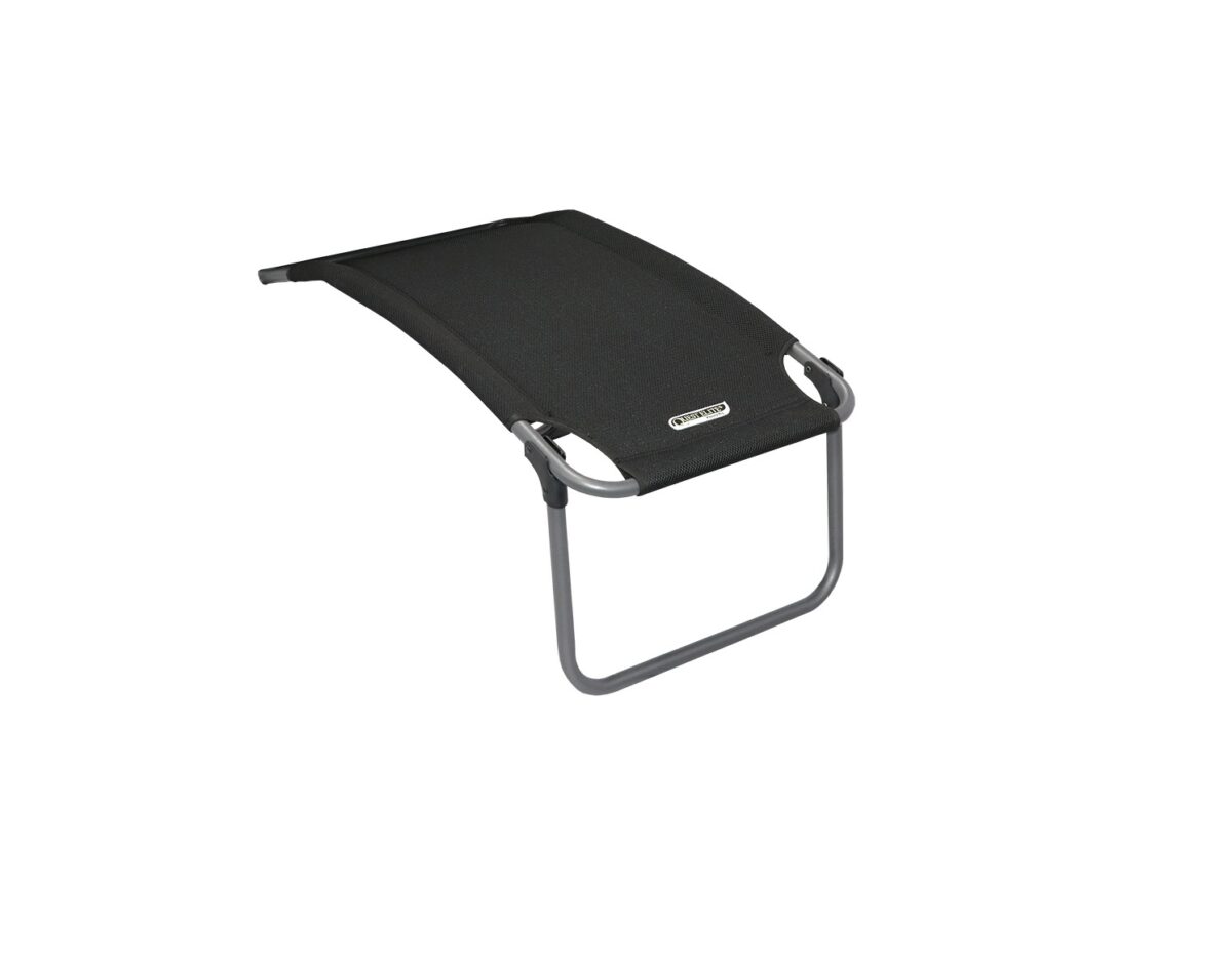 This is the ultra-lightweight Quest Elite Vienna Pro Rest Leg Extension – Black. It turns your chair into a lounger, giving you greater levels of comfort and additional functionality. It features the latest generation of the premium Q-Tex 2D mesh fabric which gives you cushioned comfort, class leading durability, excellent weather resistance and all-weather usage. The rest is finished with an ultra-lightweight premium aluminium frame, making it extremely light and easy to carry and move. It folds flat when not in use and the mix of Q-Tex 2D mesh fabric and aluminium frame makes this an all-weather rest. It is made to attach to the Quest Elite Vienna Pro Comfort and Recline chairs in Black, but the universal nature of the fitting means that it can be used on other chairs as well.