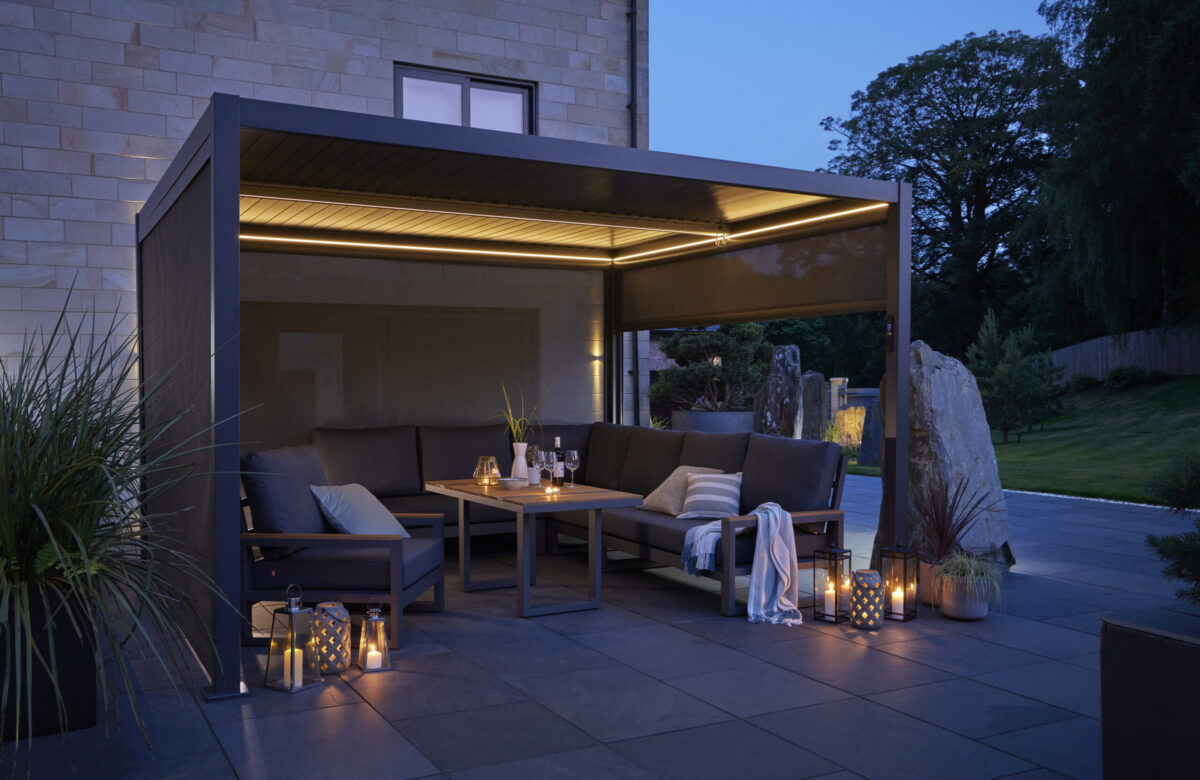 Royce Cube 6m x 3.6m LED Rectangular Aluminium Pergola – Grey