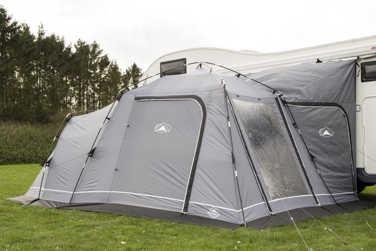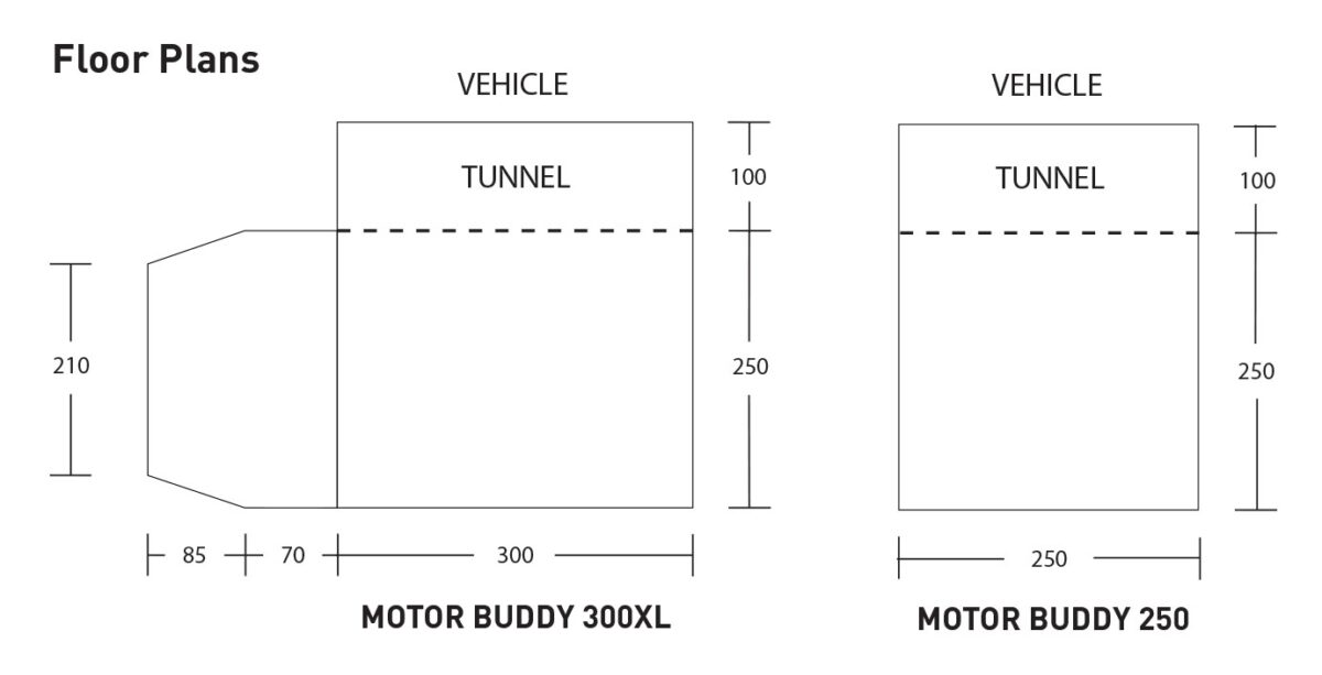 The Motor Buddy 300 is top of the line and the newest in the Sunncamp range. This model features a zipped rear access panel which is useful for complete accessibility between your motorhome and awning. It also offers a fibreglass frame which is great for increased stability and protection.