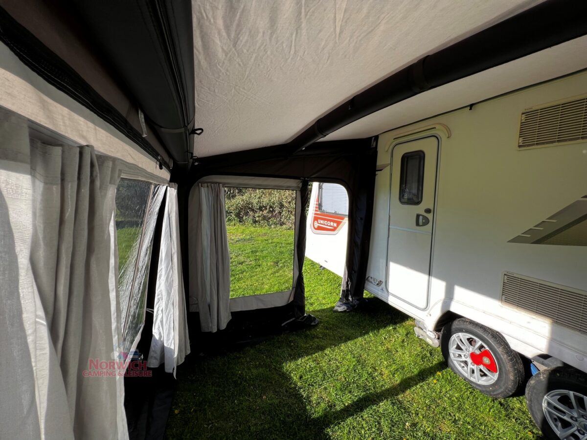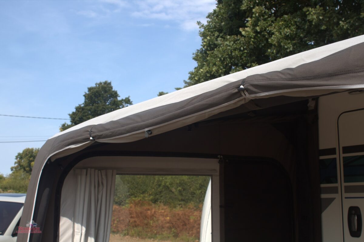 Adjustable Height – suitable for connection to caravans and motorhomes between the heights of 235 – 280cm. Zipped fastenings can be adjusted on the side walls of the awnings, both internally and externally, to adjust the height ranges by 15cm at a time.