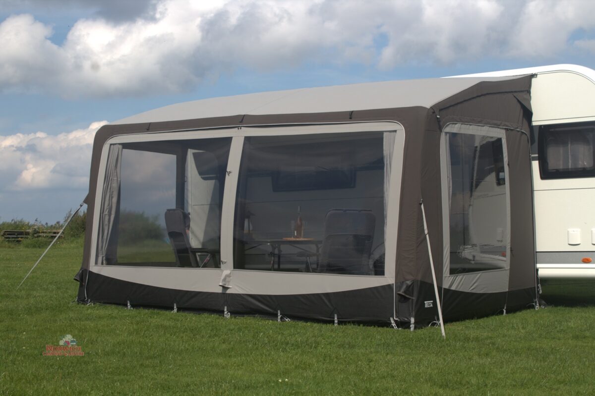 Adjustable Height – suitable for connection to caravans and motorhomes between the heights of 235 – 280cm. Zipped fastenings can be adjusted on the side walls of the awnings, both internally and externally, to adjust the height ranges by 15cm at a time.