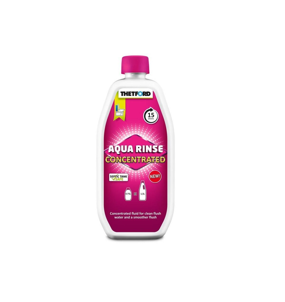 A highly effective, 2x concentrated, fresh smelling fluid for the flush water tank of your cassette and portable toilet.