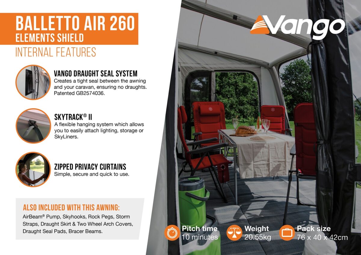Vango Balletto Air 260 Elements Shield Awning Incl. carpet