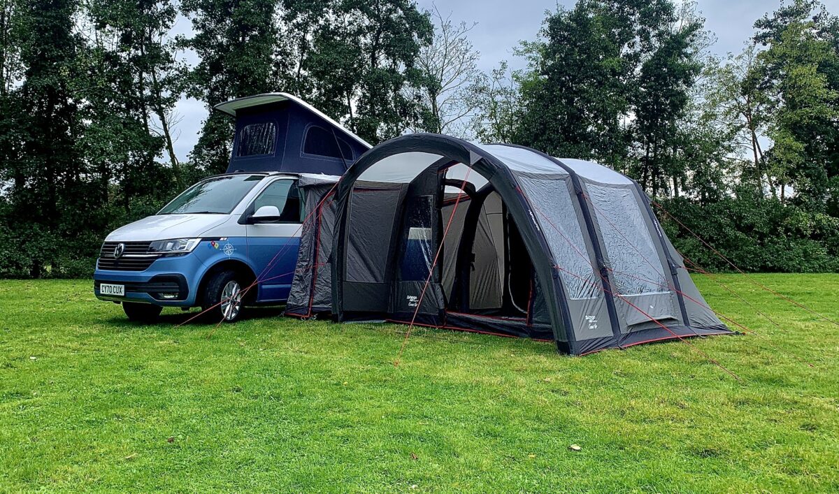 The Vango Como sits parallel to the camper van and faces the front of the vehicle, it is therefore ideal for vans with habitation doors on the passenger’s side. It can be used on the driver’s side, however it will face the back of your vehicle.
